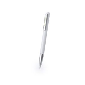 Bolígrafo de mecanismo pulsador fabricado en ABS reciclado. Con accesorios en vivos colores y cuerpo de suave acabado en color blanco sólido. Distintivo ABS reciclado en la parte superior ...