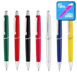 Bolígrafo de mecanismo giratorio y sobrio diseño bicolor con accesorios en color plateado mate y cuerpo de acabado sólido en colores brillantes. Especialmente diseñado para tampografía en clip y ...