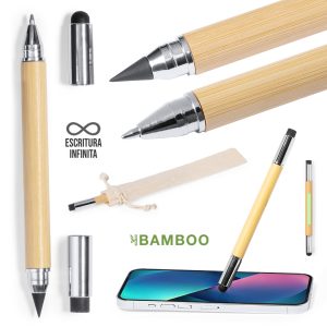 Bolígrafo lápiz eterno 2 en 1, fabricado en bambú, con cuerpo de suave acabado y accesorios cromados. Con cierre de capucha con borrador y puntero en cada extremo, incluye ...