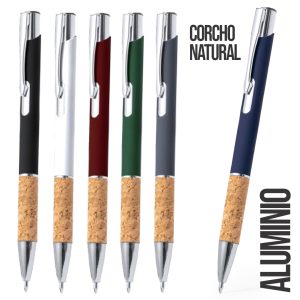 Elegante bolígrafo de línea nature y mecanismo pulsador. Cuerpo en resistente aluminio de acabado goma y empuñadura en corcho, con la caña en una amplia gama de distintivos colores. ...