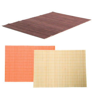 Salvamantel plegable de diseño rectangular en madera de bambú de variados colores. Con refuerzos en resistente hilo.