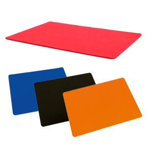 Salvamantel en flexible silicona de vivos colores con superficie reforzada antideslizante y troquelado para colgar.