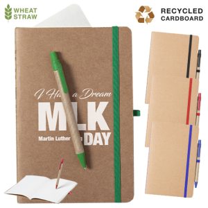 Set de libreta y bolígrafo de línea nature. Incluye libreta en cartón reciclado, con soporte para bolígrafo y cinta de cierre a juego, de 60 hojas lisas. Bolígrafo de ...