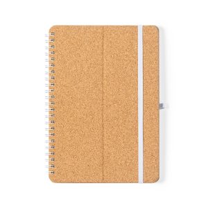 Libreta de anillas en línea nature. Con tapas rígidas en corcho natural y elástico de cierre en color negro. De 100 hojas con diseño eco y disposición a una ...