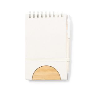 Set de libreta y bolígrafo de línea nature. Libreta de anillas con tapas rígidas en bambú, con soporte para el bolígrafo. De 80 hojas con diseño eco y disposición ...