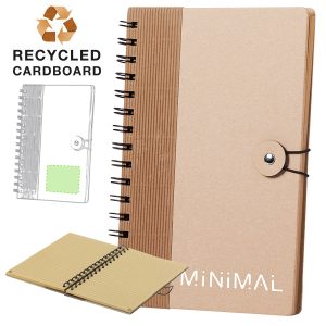 Libreta A5 de línea nature, con tapas blandas en resistente cartón reciclado. 60 hojas lisas de acabado kraft y distintivo reciclado. 60 Hojas