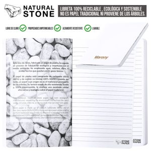 Libreta de línea nature fabricada a base de extractos de piedra, en elegante acabado de color blanco. Tapas flexibles, con ilustración eco en el interior de la portada y ...