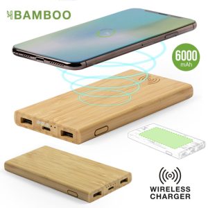 Batería auxiliar externa de línea nature con cargador inalámbrico integrado. Carcasa en bambú procedente de cortes naturales. 6.000 mAh de capacidad de carga e indicador de estado de carga. ...