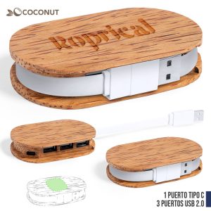 Puerto USB 2.0 de línea nature y fabricado en bambú. Incluye 1 puerto Tipo C y 2 puertos USB. Presentado en atractiva caja de diseño eco. 1 Puerto Tipo ...