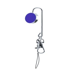 Llavero cuelgabolsos metálico con corona en polipiel de vivos colores. Con cinta de transporte de cierre de mosquetón. Presentado en estuche individual.