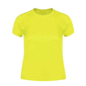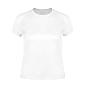 Camiseta técnica para mujer en material 100% poliéster transpirable de 135g/m2. Con manga ranglán, cuello redondo y con bandas frontales y laterales en tejido transpirable microperforado. Disponible en tallas ...