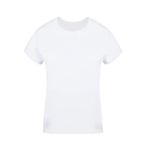 Camiseta de mujer confeccionada en suave 100% algodón de 160g/m2. Con diseño tubular sin costuras lateras y cuello redondo. Disponible en color blanco y en tallas S, M, L, ...