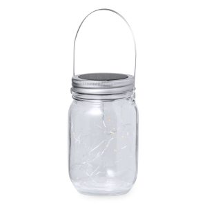 Original lámpara tarro solar, fabricada en resistente material cristal y con una tira interior decorativa de 20 LEDs. Incluye tapadera a rosca metálica con minipanel solar de recarga integrado ...