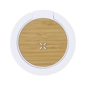 Lámpara multifunción fabricada en bambú. Con cargador inalámbrico de 15W integrado y 27 LEDs en un aro plegable que también hace de soporte. Compatible con dispositivos móviles de carga ...