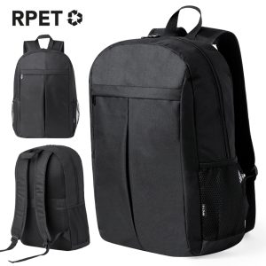 Mochila elaborada en resistente 600D RPET. Provista de cierre de cremallera de doble tirador y un práctico bolsillo frontal. Su interior cuenta con compartimentos acolchados diseñados para tablet de ...
