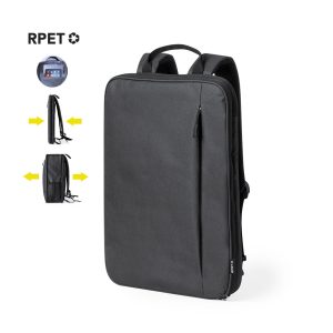 Mochila extensible confeccionada en resistente 600D RPET. Equipada con cierre de cremallera de doble tirador, con posibilidad para ampliar la capacidad. Su interior cuenta con compartimentos acolchados diseñados para ...
