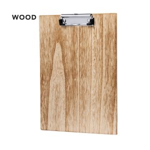 Excelente organizador en suave madera tamaño A4. Con resistente pinza para documentación y presentada individualmente en caja de diseño kraft.