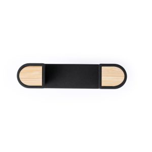 Soporte ajustable para smartphone de diseño minimalista, con base rotatoria 360º y de elegante acabado en color negro con detalles en bambú. Con sistema de fijación en rejilla de ...