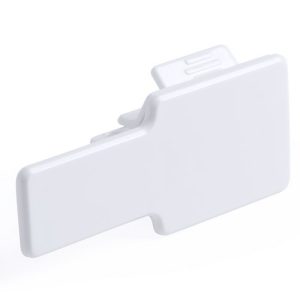 Original soporte plegable para acople en toma de corriente de pared. Cuerpo en acabado translúcido y especialmente diseñado para marcaje en tampografía.