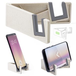 Soporte para dispositivo móvil de línea nature. Fabricado en caña de trigo/PP, para así fomentar la utilización de materias primas naturales y reducir las emisiones contaminantes.Patas plegables con topes ...