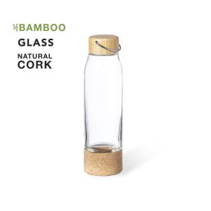 Bidón de línea nature y 470 ml de capacidad. Cuerpo fabricado en cristal, con base en corcho. Incluye original tapón a rosca de bambú con asa integrada. Presentado en ...