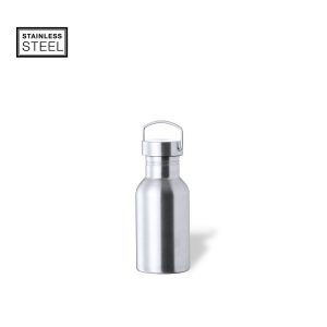 Bidón de 600 ml de capacidad, fabricado en acero inox. Tapón a rosca a juego libre de BPA, con anilla de transporte integrada, plegable y de acabado cromado. Disponible ...