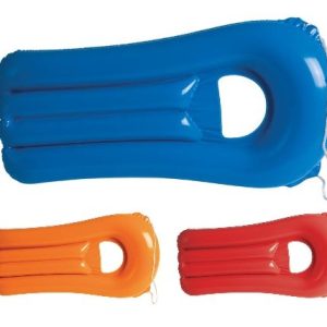 Colchoneta inflable de 180cm en resistente PVC de vivos colores. Presentada con plegado especial para fácil impresión. Plegado Especial para Impresión