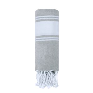 Pareo toalla 2 en 1 de línea nature y acabado gris. De fabricación europea y en combinación de algodón reciclado y poliéster de 250g/m2. Con certificación GRS (Global Recycled ...
