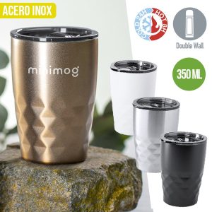 Vaso de acero inox de 310ml de capacidad. Con tapa dosificador de seguridad y base acolchada de suave espuma. De original acabado brillante y diseño en rombos, disponible en ...