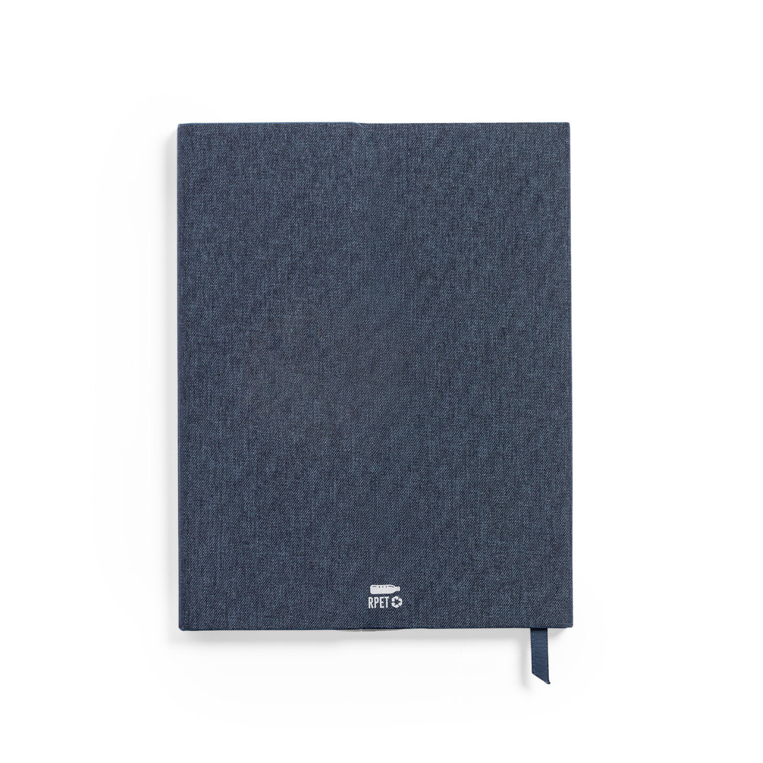 Bloc de notas desplegable de línea nature fabricado en poliéster 300D RPET. Con tapas duras y detalle en bambú en la portada. Interior desplegable con 80 hojas de disposición a una raya, marcapáginas de tela a juego y soporte para bolígrafo (bolígrafo no incluido). Disponible en variada gama de colores, con distintivo RPET en la contraportada.El material RPET se elabora a partir de plástico reciclado, para así fomentar la reutilización de residuos plásticos y ayudar a la sostenibilidad del planeta. Portada Rígida. 80 Hojas