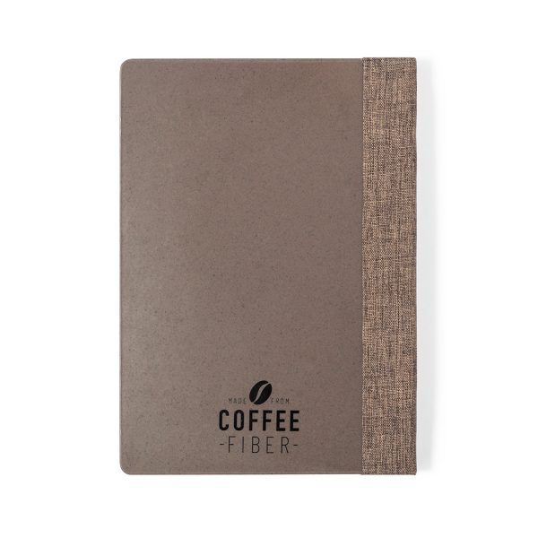 Bloc de notas de línea nature. Con tapas rígidas fabricadas en fibra de café, elaborada a partir de los residuos producidos en la obtención del café. Una alternativa sostenible que favorece la reducción del uso de plásticos, ahorrando energía en el proceso de fabricación y fomentando así el cuidado del medio ambiente. Interior con 100 hojas de disposición a una raya y distintivo fibra de café en contraportada. Portada Rígida. 100 Hojas