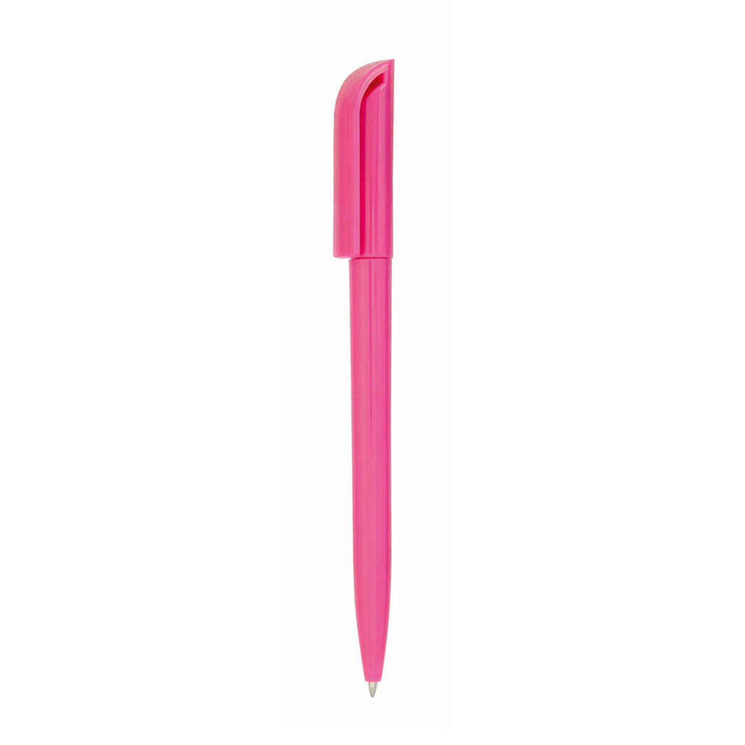 Bolígrafo de mecanismo giratorio con cuerpo de suave acabado en alegres colores sólidos y con clip plano. Tinta azul.