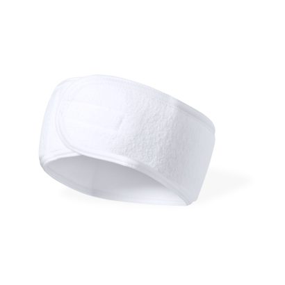 Cinta para pelo fabricada en suave poliéster. Banda ajustable a la cabeza con velcro para despejar el pelo de la cara mientras se aplican los tratamientos beauty.