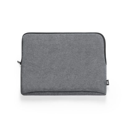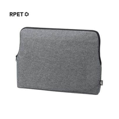 Funda para ordenador portátil de línea nature y en resistente 600D RPET efecto melange, elaborado a partir de plástico reciclado para así fomentar la reutilización de residuos plásticos y contribuir a la sostenibilidad del planeta. Detalles en negro y compartimento principal con cierre de cremallera. Interior totalmente acolchado y forrado, con distintivo RPET en etiqueta exterior. Acolchada