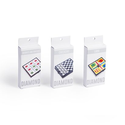 Juego de mesa plegable con superficie metálica y fichas magnéticas. Disponibles parchís, tres en raya y damas. Presentado en caja individual. Magnético