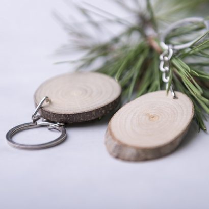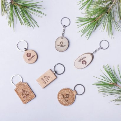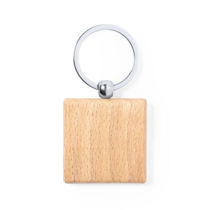 Elegante llavero de línea nature fabricado en madera natural de haya. Con amplia superficie de marcaje y disponible en diseños rectangular y redondo.
