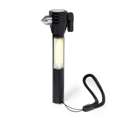 Versátil martillo de emergencia. Cuenta con tres funciones: una potente linterna con 6 luces COB alimentadas por pilas de botón (incluidas), una punta metálica rompecristales y una cuchilla cortacinturones. Zona imantada en parte superior y tira para una mejor sujeción. Presentado en caja individual kraft. 6 Luces COB. Magnético. 3 Funciones. Pilas Botón Incluidas