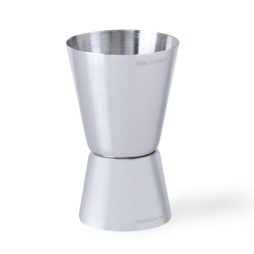 Medidor de bebidas en acero inox de acabado mate. Diseñado especialmente para marcaje en láser y presentado en caja de PVC.