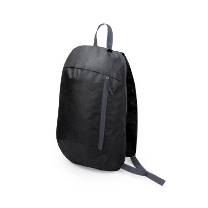 Mochila en resistente poliéster 600D de desenfadado diseño outdoor, con cierre de cremallera y bolsillo frontal. Accesorios en color gris, con acolchado en espalda y cintas de hombros. Parte Trasera y Cintas Acolchadas