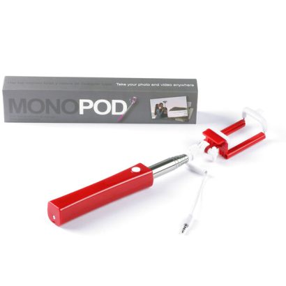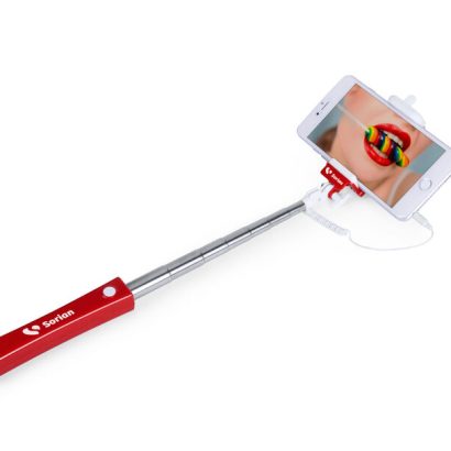 Desenfadado palo selfie plegable de diseño patentado con conexión jack de 3,5mm, sistema antigiro, confortable mango ergonómico y disparador integrado. Recorrido de acero inox y sistema de almohadillas en el soporte para así ofrecer un óptimo ajuste y protección del smartphone, además de una tuerca de ajuste a fijar según la inclinación que se desee, para así hacerse selfies todavía más variados y divertidos. Compatible con todo tipo de smartphones y especialmente diseñado para marcaje en tampografía, con accesorios a juego y presentado en atractiva caja de diseño. Conexión Jack 3,5 mm. 7 Posiciones
