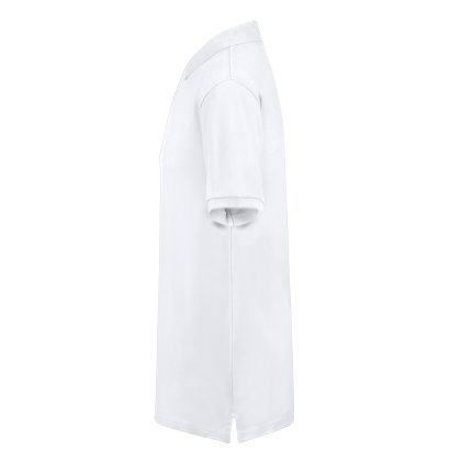 Polo de piqué para adulto en color blanco. En material 100% algodón de 220g/m2. Con dos botones de cierre a juego y aperturas laterales en los bajos. Tallas S, M, L, XL, XXL, 3XL.