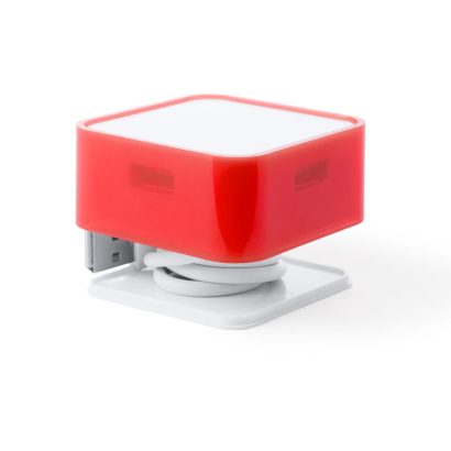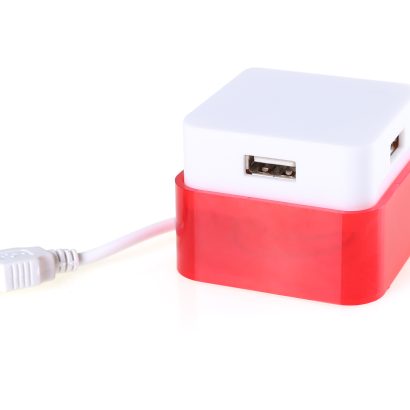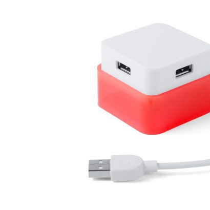 Original puerto USB 2.0 en divertido diseño bicolor y con mecanismo plegable interior para recoger el cable de conexión. Con 4 puertos USB y zona lisa superior para marcaje en tampografía. 4 Puertos. USB 2.0