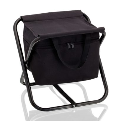 Silla plegable con cuerpo de aluminio y nevera integrada en asiento de variados colores. Asiento y nevera en resistente poliéster 600D con costuras reforzadas. Con cierre de cremallera y prácticas asas de transporte en nylon. Con tira de refuerzo de nylon en las patas e interior isotermo en acabado de aluminio. Plegable