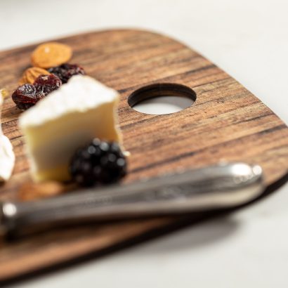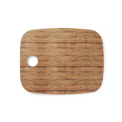 Tabla de corte y presentación fabricada en madera natural, con agujero para colgar. Amplia superficie de marcaje y distintivo Made In Europe.