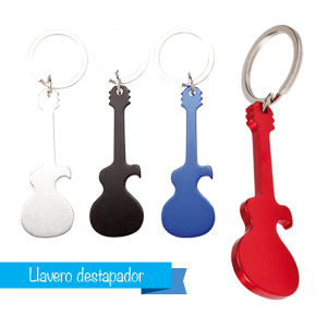 Llavero abridor en forma de guitarra con cuerpo de aluminio en variados y vivos colores. Especialmente diseñado para marcaje en láser.
