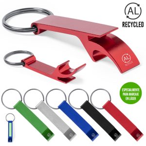 Llavero abridor en aluminio reciclado. Con accesorio para apertura de latas y especialmente diseñado para marcaje en láser. Disponible en variada gama de colores metalizados, con distintivo aluminio reciclado. ...