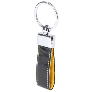 Llavero de elegante acabado en polipiel bicolor con accesorio metálico. Presentado en estuche individual troquelado.