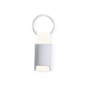 Llavero con cuerpo metálico de acabado plateado. Cinta 100% algodón de acabado natural. Amplia superficie de marcaje y anilla llavero metálica a juego. Presentado en bolsa individual con cartón ...