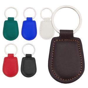 Llavero con cuerpo acabado en polipiel de vivos y variados colores.