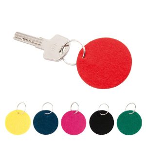 Llavero circular con cuerpo en suave fieltro de variados y vivos colores.
